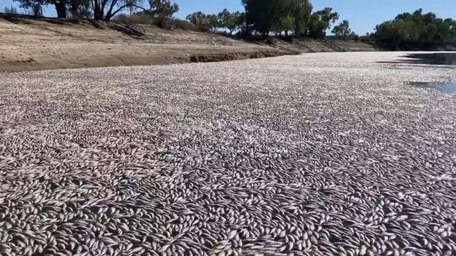 آسٹریلیا کے جنوب مشرقی علاقے میں پانی کے تالاب اور ندی میں پانی کی کمی اور شدید گرمی کے باعث لاکھوں مچھلیاں مری ہوئی پائی گئیں۔ایسوسی ایٹڈ نیوز ایجنسی کی رپورٹ کے مطابق نیو ساؤتھ ویلز ریجن میں پرائمری انڈسٹریز کے محکمے کے ذمہ داروں کا کہنا ہے کہ اتنی بڑی تعداد میں مچھلیوں کے مرنے کی وجہ شدید گرمی کی لہر ہے۔رپورٹ میں بتایا گیا ہے کہ مچھلیوں کی موت ممکنہ طور پر آکسیجن کی کم سطح کی وجہ سے ہوئی ہے کیونکہ گرم موسم کی وجہ سے مچھلیوں کو زیادہ آکسیجن کی ضرورت ہوتی ہے جس کی وجہ سے صورتحال خراب ہے۔آسٹریلیا کے جنوبی علاقے مینیندی کے قریبی قصبے کے رہائشیوں نے مردہ مچھلیوں کے موجودگی کے باعث شدید بدبو کی شکایت کی ہے۔ایک مقامی شہری جان ڈیننگ نے بتایا ہے کہ اتنی بڑی تعداد میں مردہ مچھلیوں کو دیکھنا انتہائی خوفناک ہے اور بدبو میں رہنا مشکل ترین ہے۔نیچر فوٹوگرافر جیوف لونی نے جمعرات کی شام مینندی میں مین ویر کے قریب مردہ مچھلیوں کی ایک بڑی تعداد کی فوٹو شیئر کی ہیں۔مینندی کے شمال میں رہنے والے لوگ کہتے ہیں کہ یہاں بہنے والے دریا کے نیچے ہر طرف مردہ مچھلیاں تیر رہی ہیں۔یہی بدبودار پانی ہمارے شہروں کے پمپنگ سٹیشنوں پر آتا ہے، ہمیں ماسک لگاناپڑ رہا ہے اور ہم اپنی صحت کے بارےمیں فکر مند ہیں۔مچھلیوں کی موت ممکنہ طور پر آکسیجن کی کم سطح کی وجہ سے ہوئی ہے۔ فوٹو ٹوئٹرگزشتہ ہفتوں میں دریائے ڈارلنگ باکا پر مچھلیوں کی بڑے پیمانے پر مرنے کی اطلاع ملی ہے۔ فروری کے اواخر میں اسی جگہ پر ہزاروں کی تعداد میں مری ہوئی مچھلیاں پائی گئیں جبکہ جنوبی آسٹریلیا اور وکٹوریہ ریاستوں کی سرحدوں کے قریب پونکاری کی جانب بھی ہزاروں مردہ مچھلیوں کی کئی رپورٹیں ملی ہیں۔واضح رہے کہ 2018 کے آخر اور 2019 کے اوائل میں شدید خشک سالی کے دوران مینندی کے دریا پر مچھلیوں کی بہت زیادہ ہلاکتیں ہوئی تھیں اور مقامی لوگوں نے لاکھوں کی تعداد کا تخمینہ لگایا۔