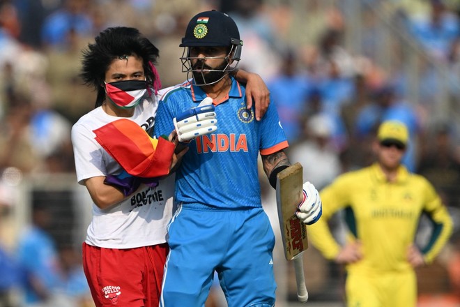 ورلڈ کپ فائنل میں ’فری فلسطین‘ والی شرٹ پہن کر گھسنے والے 24 سالہ آسٹریلیوی شہری جونسن وین کو گاندھی نگر کی عدالت میں پیش کیا گیا۔انڈین نیوز چینل ’ای ٹی وی بھارت‘ کے مطابق گذشتہ روز احمد آباد کے نریندر مودی سٹیڈیم میں جاری ورلڈ کپ کے فائنل میں انڈیا کی اننگز کے دوران جونسن وین اُس وقت گراؤنڈ میں داخل ہوئے جب انڈیا کی بیٹنگ جاری تھی اور وراٹ کوہلی بیٹنگ کر رہے تھے۔انہوں نے سکیورٹی کے حصار کو توڑا اور گراؤنڈ میں گھُس کر وراٹ کوہلی کو گلے سے لگانے کی کوشش کی۔ پولیس نے انہیں گرفتار کر لیا تھا اور احمدآباد کے چندکھیڑا پولیس سٹیشن منتقل کردیا گیا تھا۔ٹی وی سکرین پر دُنیا بھر کے شائقین نے دیکھا کہ جون نے جو شرٹ پہنی ہوئی تھی اس پر فلسطین کی حمایت میں جملے درج تھے۔جونسن وین کو گراؤنڈ میں موجود قانون نافذ کرنے والے اداروں کے اہلکاروں نے پکڑا اور سٹیڈیم سے باہر نکال دیا۔جب انہیں پولیس اہلکار پکڑ کر گراؤنڈ سے باہر لے جا رہے تھے تو صحافیوں نے اُن سے کئی سوالات بھی کیے۔ایک صحافی نے ان سے پوچھا کہ ’آپ سٹیڈیم میں کیوں داخل ہوئے؟‘ انہوں نے جواب دیا کہ ’میں احتجاج کر رہا تھا۔‘جونسن وین نے مزید کہا کہ ’میرا تعلق آسٹریلیا سے ہے۔ میرا نام جونسن وین ہے اور میرا نِک نیم جون ہے۔‘انہوں نے میچ کے دوران گراؤنڈ میں داخل ہونے کی وجہ بتاتے ہوئے کہا کہ ’میں وراٹ کوہلی سے ملنا چاہتا تھا اور میں فلسطین کی حمایت بھی کرتا ہوں۔‘