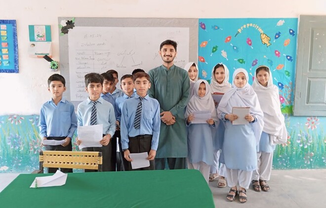 حسن کے مطابق ’جو بچہ دو لفظ نہیں بول پاتا تھا اب میرے پڑھانے کے بعد اسے سٹار سمجھا جاتا ہے‘ (فائل فوٹو: حسن مختار)